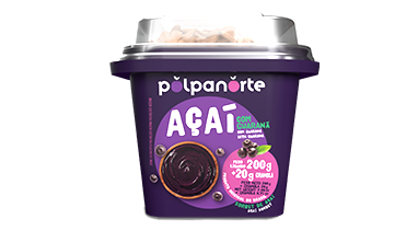 Açaí Polpanorte 200g + 20g de granola sabor banana. Sobremesa individual, prática, super refrescante e com um sabor todo tropical de banana.